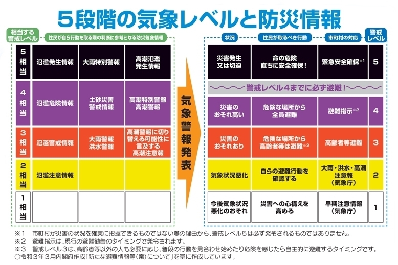警戒レベルに関係なく身の危険が想定される場合は避難をしましょう!