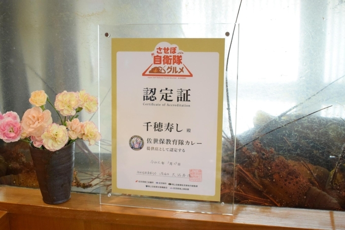 伊勢海老の生け簀の前に認定証がありました!