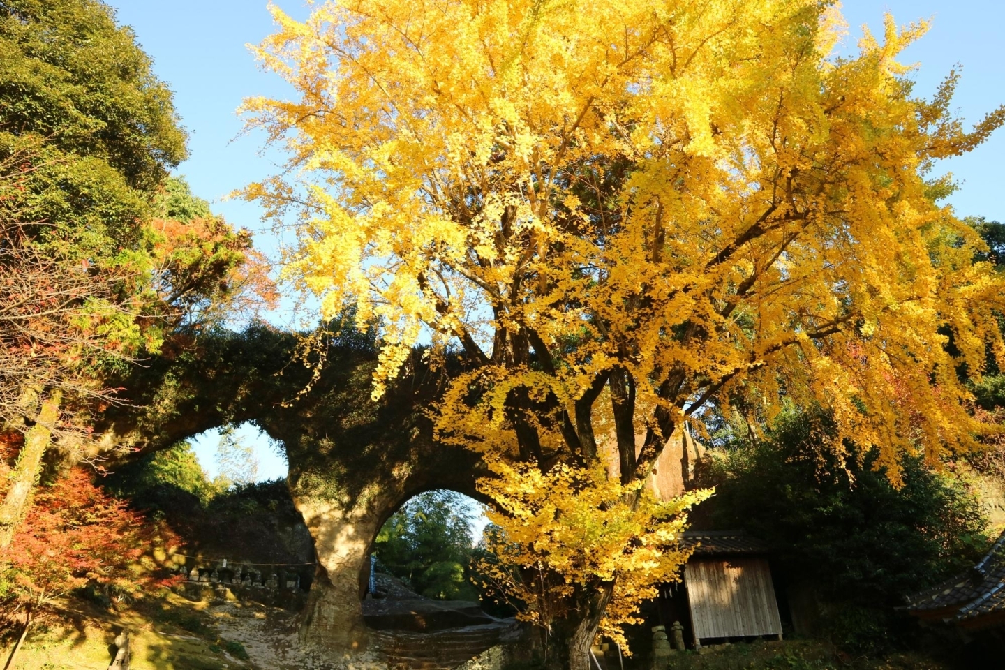 紅葉の名所でもあり、季節になると大石橋と紅葉の美しいコラボレーションを楽しめます。