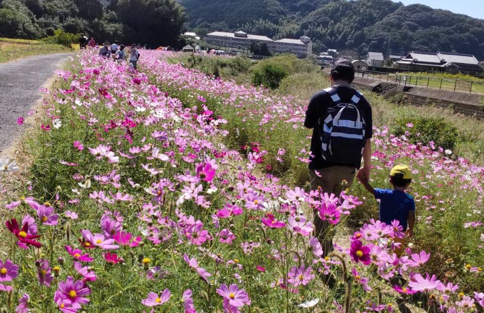 30年ほど前から地域の方がコスモスを植え始められた街道で、約20万本のコスモスが今福橋周辺を彩る。2019年より三川内地区自治協議会も参加し、三川内のお野菜、お米や飲食店など多数出店するイベントなども開催されるようになりました。三川内地区を盛り上げようと、街道以外の町内のあちらこちらで少しずつ植え進められており、どんどん広がっているそうです。