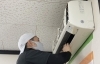 シートを敷いてビニールを張り作業の準備。エアコン周辺が汚れることなく作業をしてもらえます♪