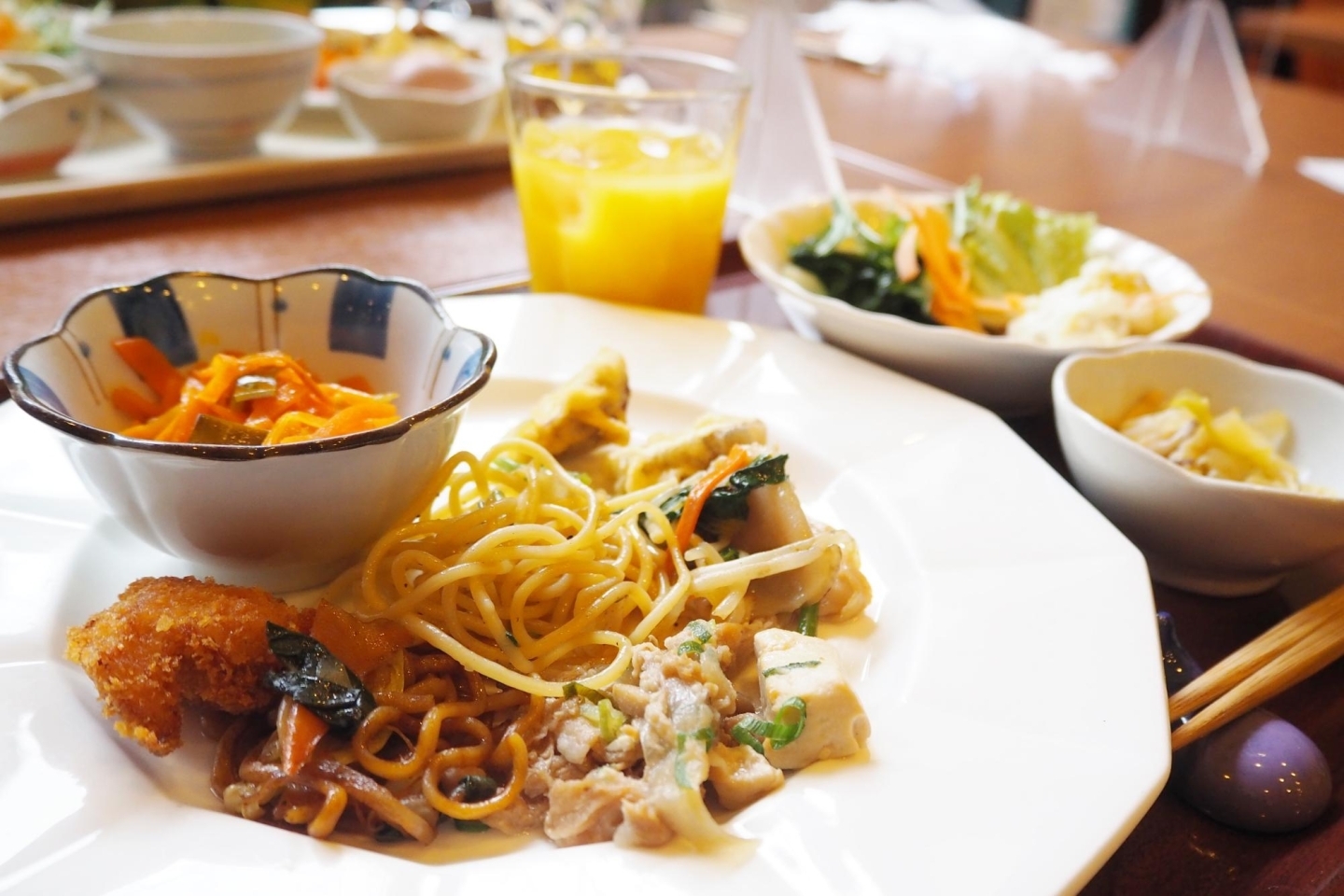 マリナホリデイの料理は、『母の味』をコンセプトに、煮物やてんぷら、きんぴら、唐揚げ、お浸しなど、野菜をたくさん使ったメニューが盛り沢山です。
