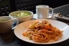 純喫茶の雰囲気が漂う素敵な店内! 大きな窓からは緑がたくさん見えます。こういう雰囲気で頂くパスタって絶対美味しいんだよなぁ~。どのパスタも美味しそうですが、この雰囲気の中でいただくには、やっぱりパスタの王道「ナポリタン」!と思い、注文しました。ナポリタンの味ってなんだか懐かしい感じがしますよね。パスタと言えど“実は日本生まれ”の宿命でしょうか(笑)