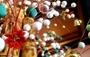 竹筒に飾られたクリスマス仕様の繭玉