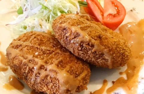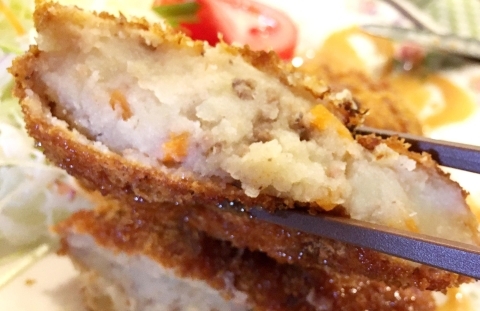握り拳ほどの大きめのコロッケがゴロっとふたつ。