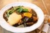 ビーフシチューは、なんと一か月もかけて作られた、こだわりのデミグラスソースが使われています。上のオムレツを割ると半熟でトロトロ。旨みたっぷりのコク深いビーフシチューと一緒に食べると絶品!もう、スプーンが止まりません。さらに長崎和牛のバラ肉と長崎県産の野菜がたくさんのっているので、お腹も大満足。