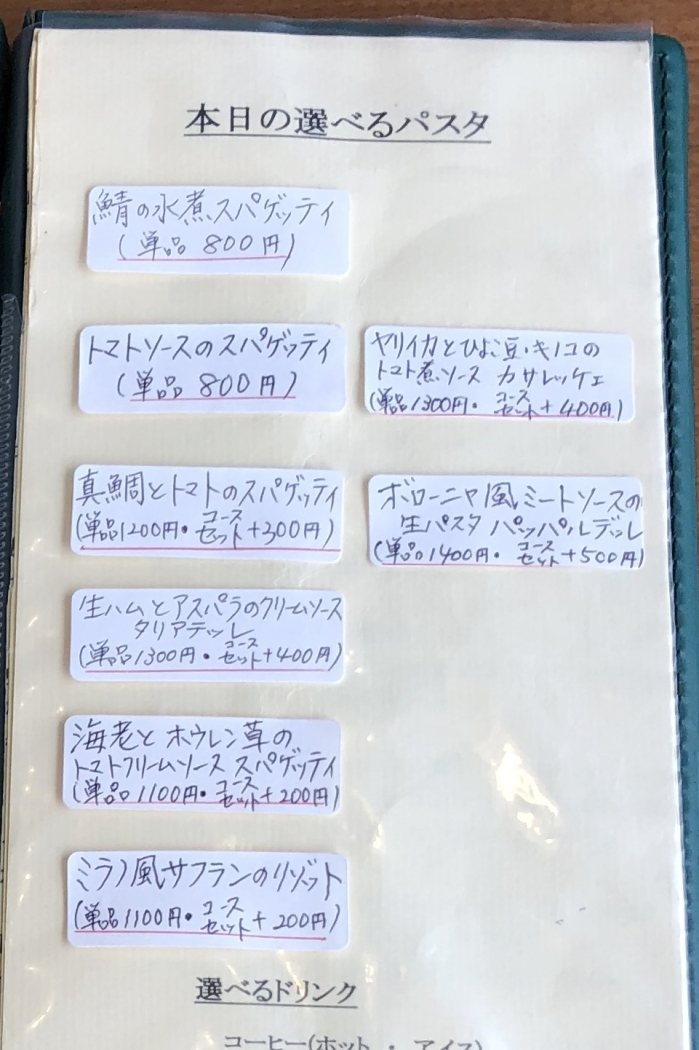 本日の選べるパスタは8種類ありました。