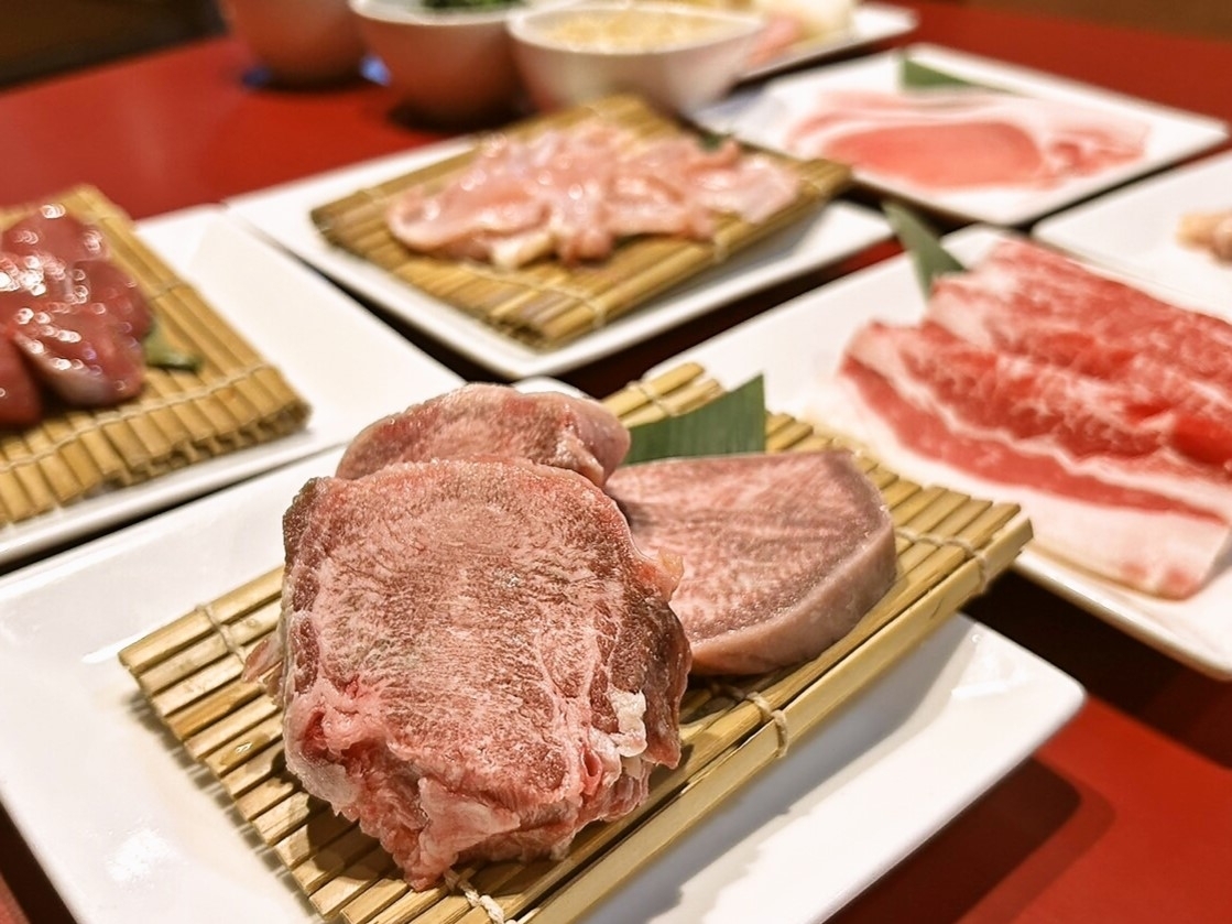 あっさり系の赤身(牛)や、ガツンと見た目に嬉しいくらい厚切りの豚タンも!