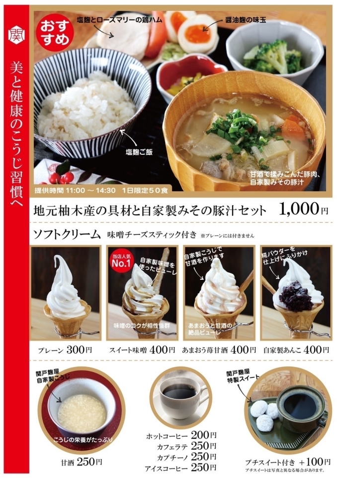 1日限定50食の豚汁セットやソフトクリーム、パンや甘酒など麹をふんだんに使ったメニュー!