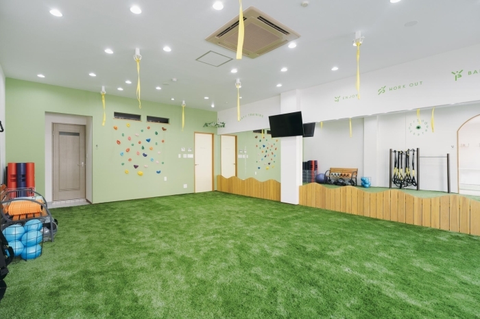 あのゴツゴツとしたトレーニングマシーンは無く、一面キレイな芝生がひかれていて、まるで草原のようなトレーニングルーム♪