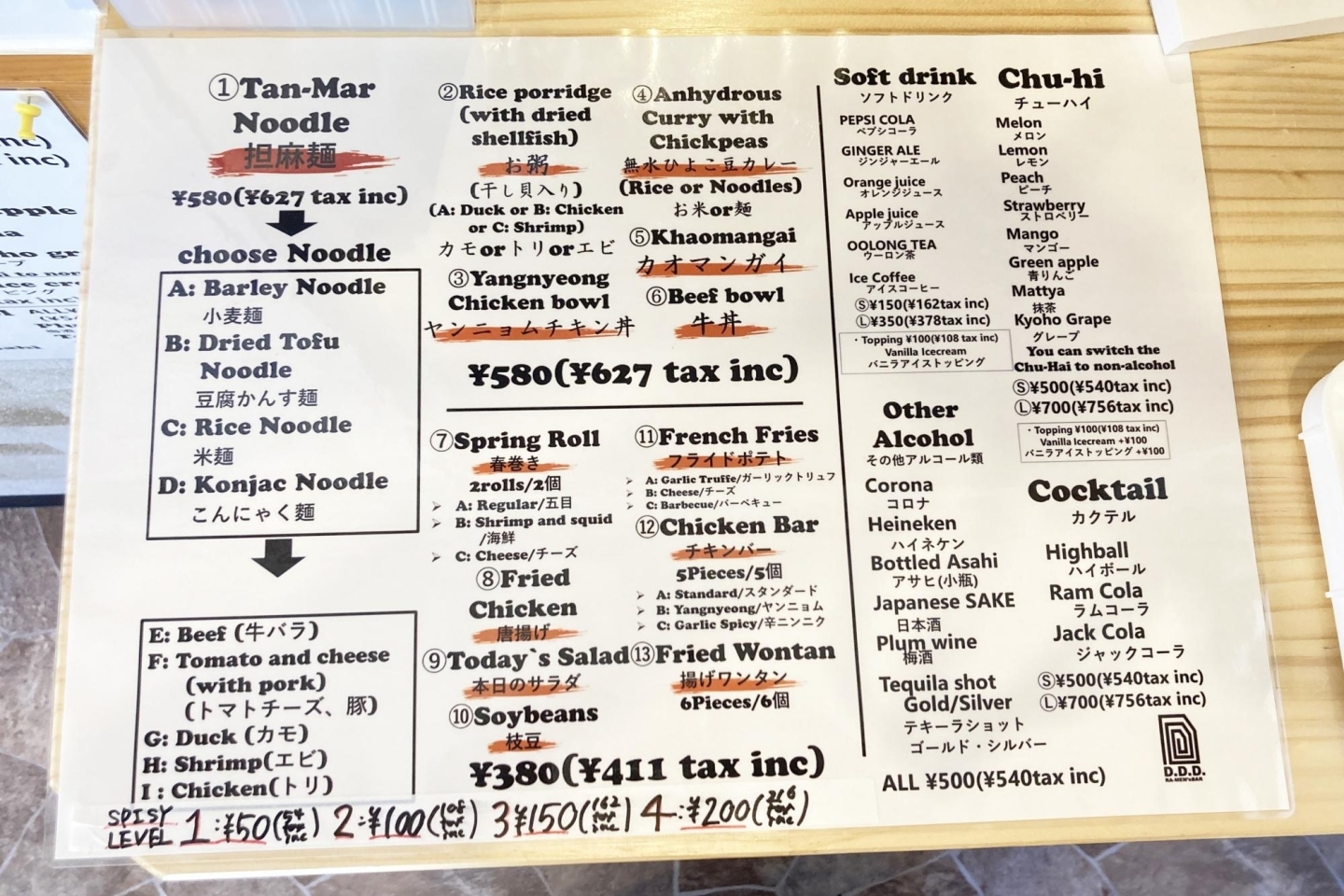 自由に楽しめる『D.D.D.』のラーメンや料理を是非楽しんでみてくださいね!
