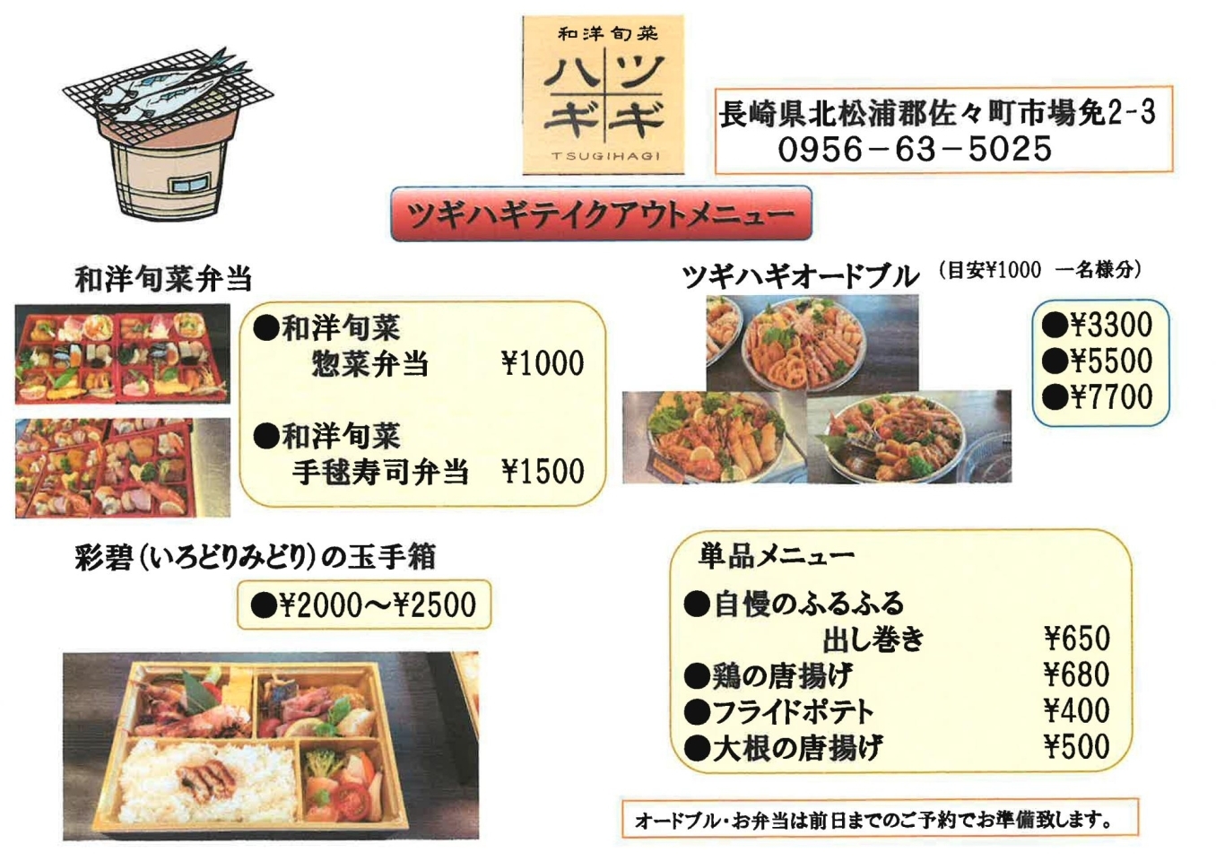 【予算】ご相談に応じてお弁当やオードブルなどもお作りできます。
