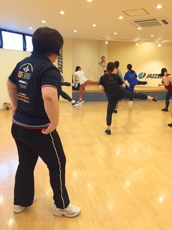 1コマ1時間のクラスです。ノリのいい音楽に合わせて、先生の軽やかな動きを見ながらいろんな動きにチャレンジします(^^♪