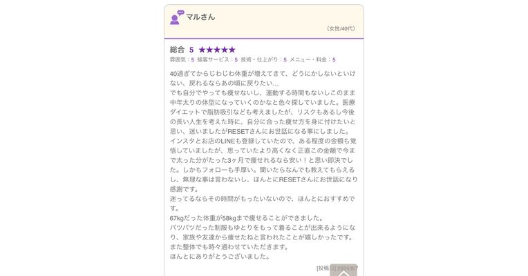 | Instagramアカウント | https://www.instagram.com/bikenseitaisalon_reset_diet/ |