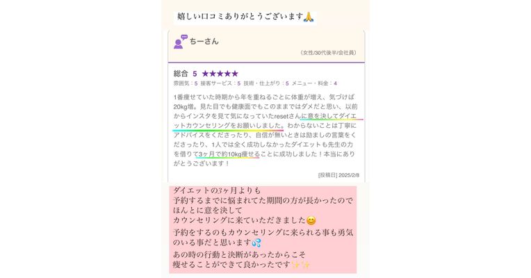 ダイエット卒業された方から嬉しい口コミいただきました😊