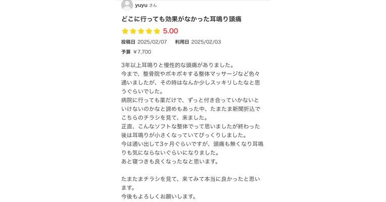 神経整体で耳鳴り頭痛改善❗️